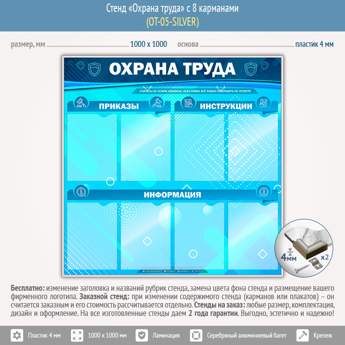 Стенд «Охрана труда» с 8 карманами (OT-05-SILVER) в Москве купить