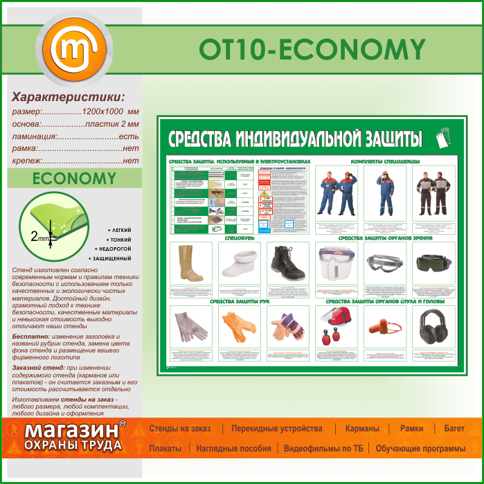Стенд «Средства индивидуальной защиты» (OT-10-ECONOMY) в Москве купить