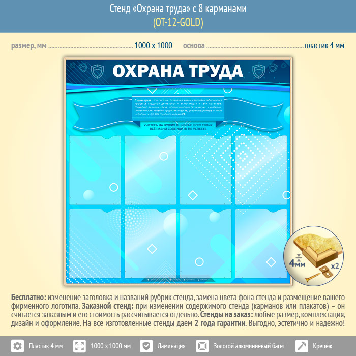 Стенд «Охрана труда» с 8 карманами (OT-12-GOLD) в Москве купить