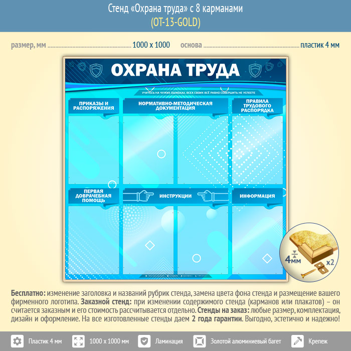 Стенд «Охрана труда» с 8 карманами (OT-13-GOLD) в Москве купить
