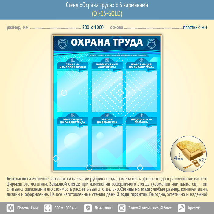 Стенд «Охрана труда» с 6 карманами (OT-15-GOLD) в Москве купить
