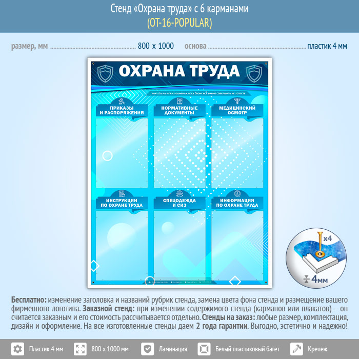Стенд «Охрана труда» с 6 карманами (OT-16-POPULAR) в Москве купить
