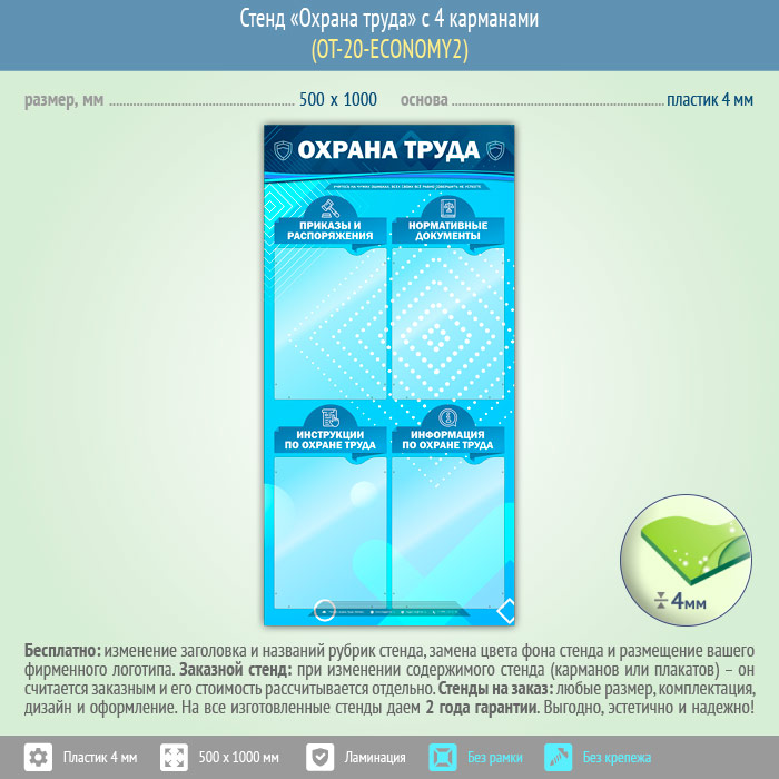 Стенд «Охрана труда» с 4 карманами (OT-20-ECONOMY2) в Москве купить