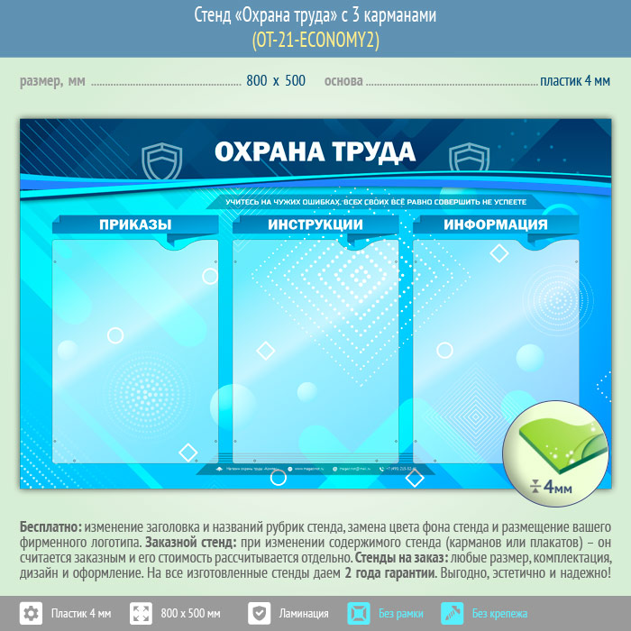 Стенд «Охрана труда» с 3 карманами (OT-21-ECONOMY2) в Москве купить