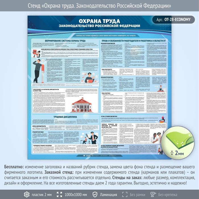 Стенд «Охрана труда. Законодательство Российской Федерации» (OT-28-ECONOMY) в Москве купить