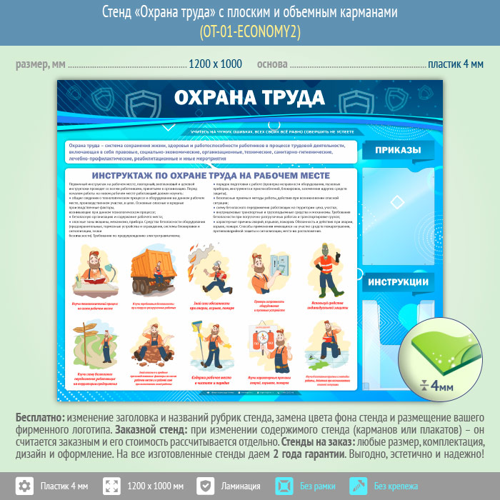 Стенд «Охрана труда» с плоским и объемным карманами (OT-01-ECONOMY2) в Москве купить