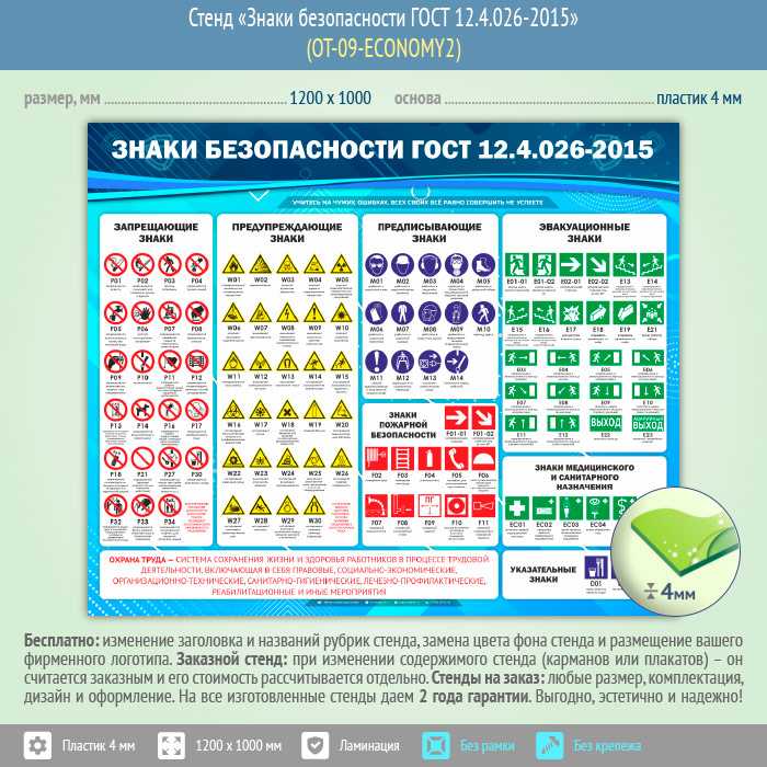 Стенд «Знаки безопасности ГОСТ 12.4.026-2015» (OT-09-ECONOMY2) в Москве купить