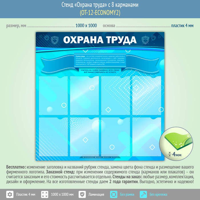 Стенд «Охрана труда» с 8 карманами (OT-12-ECONOMY2) в Москве купить