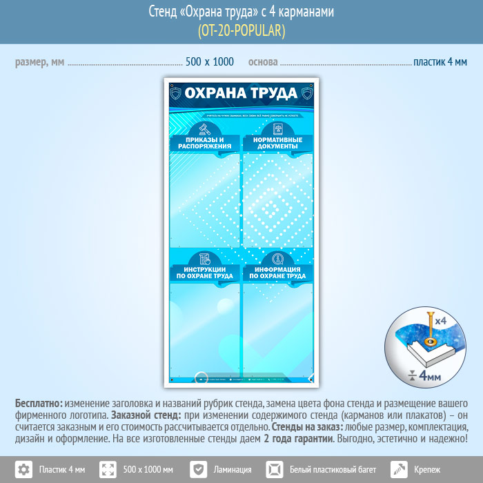 Стенд «Охрана труда» с 4 карманами (OT-20-POPULAR) в Москве купить