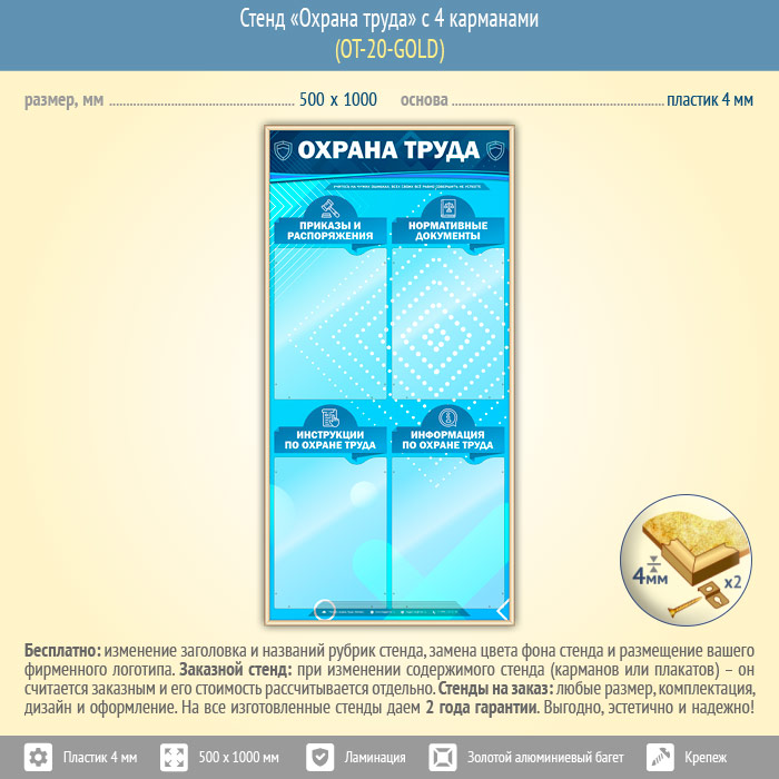 Стенд «Охрана труда» с 4 карманами (OT-20-GOLD) в Москве купить