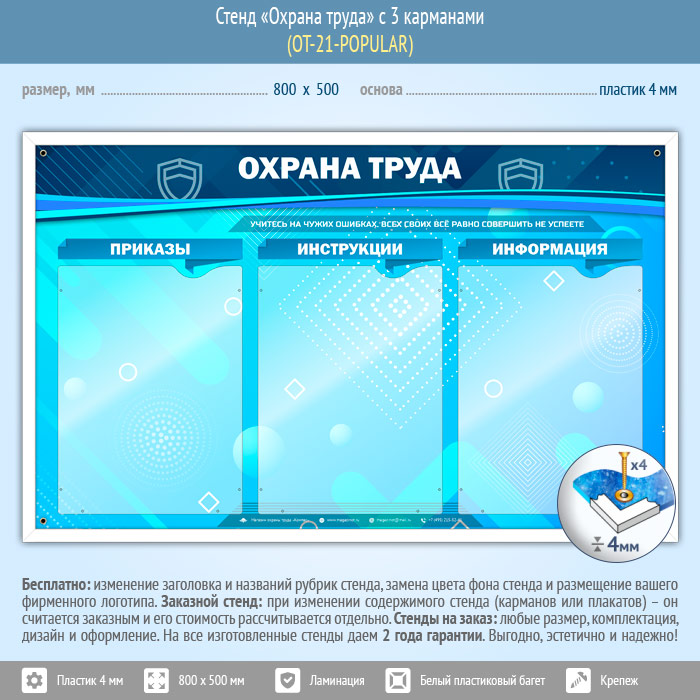 Стенд «Охрана труда» с 3 карманами (OT-21-POPULAR) в Москве купить