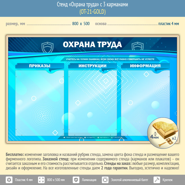 Стенд «Охрана труда» с 3 карманами (OT-21-GOLD) в Москве купить