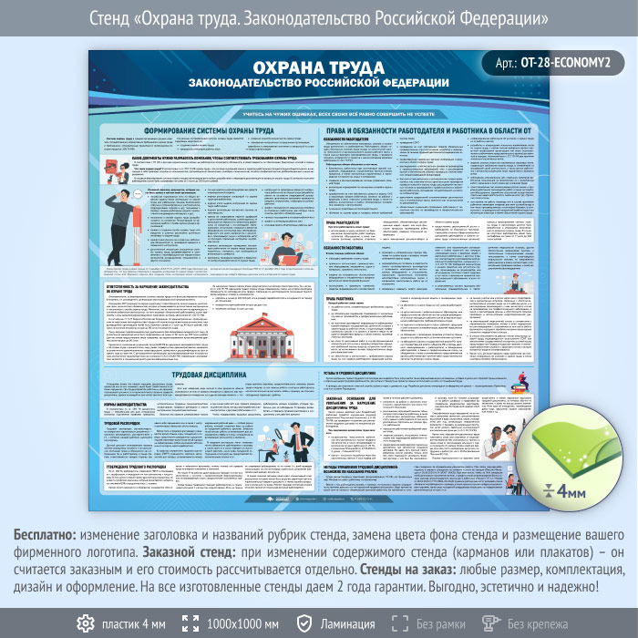 Стенд «Охрана труда. Законодательство Российской Федерации» (OT-28-ECONOMY2) в Москве купить