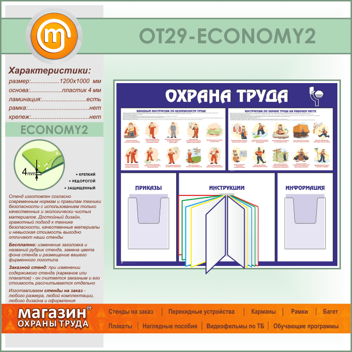 Стенд «Охрана труда» с перекидной системой и 2 объемными карманами (OT-29-ECONOMY2) в Москве купить