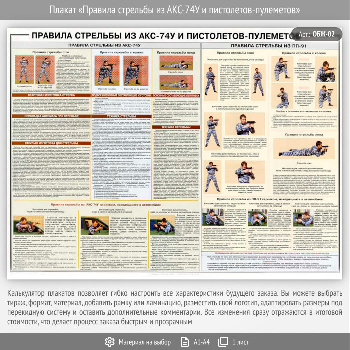 Плакат «Правила стрельбы из АКС-74У и пистолетов-пулеметов» (ОБЖ-02, 1 лист) в Москве купить