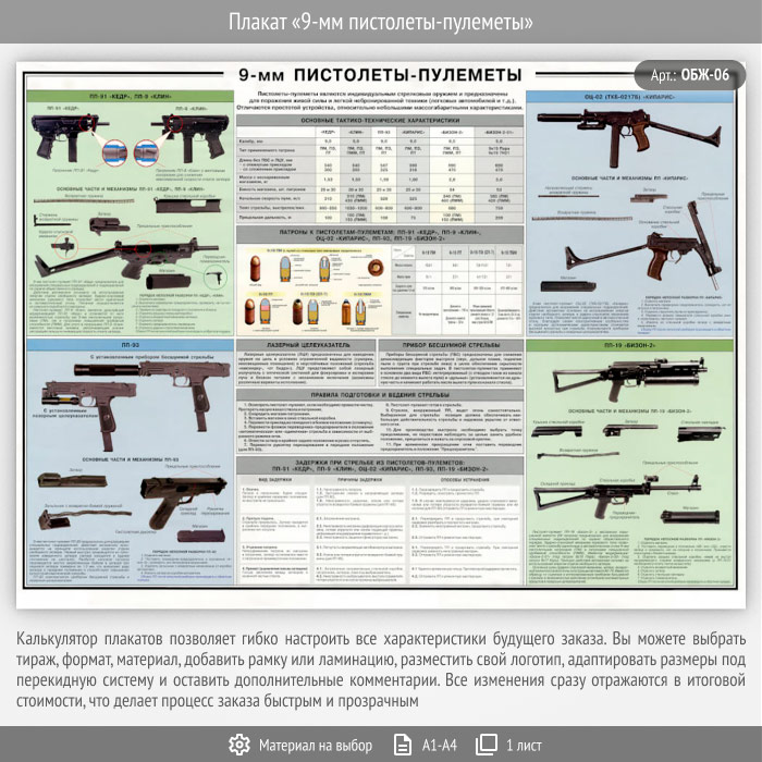 Плакат «9-мм пистолеты-пулеметы» (ОБЖ-06, 1 лист) в Москве купить