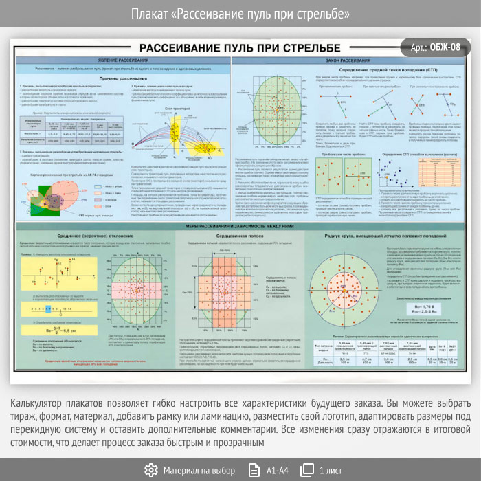 Плакат «Рассеивание пуль при стрельбе» (ОБЖ-08, 1 лист) в Москве купить