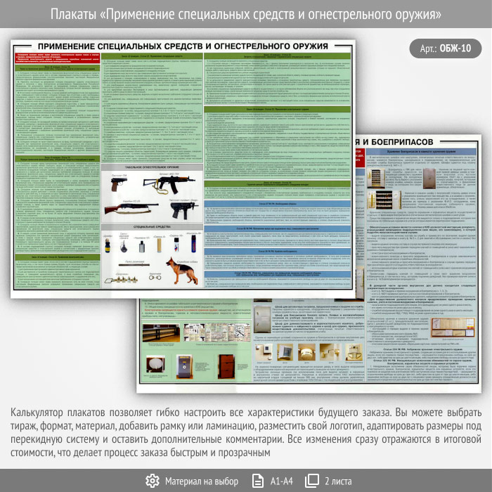 Плакаты «Применение специальных средств и огнестрельного оружия» (ОБЖ-10, 2 листа) в Москве купить