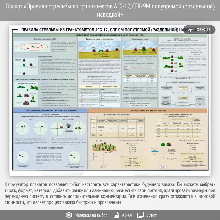 Плакат «Правила стрельбы из гранатометов АГС-17, СПГ-9М полупрямой (раздельной) наводкой» (ОБЖ-13, 1 лист) в Москве купить