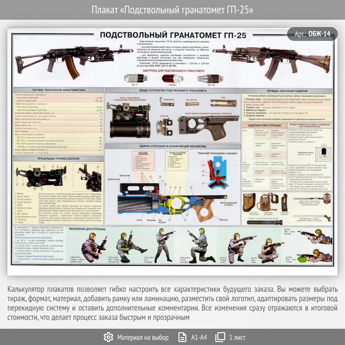 Плакат «Подствольный гранатомет ГП-25» (ОБЖ-14, 1 лист) в Москве купить