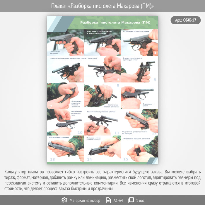 Плакат «Разборка пистолета Макарова (ПМ)» (ОБЖ-17, 1 лист) в Москве купить