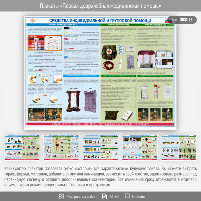 Плакаты «Первая доврачебная медицинская помощь» (ОБЖ-18, 6 листа) в Москве купить