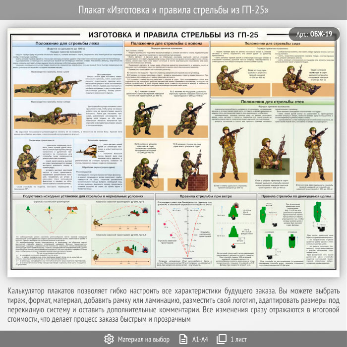 Плакат «Изготовка и правила стрельбы из ГП-25» (ОБЖ-19, 1 лист) в Москве купить