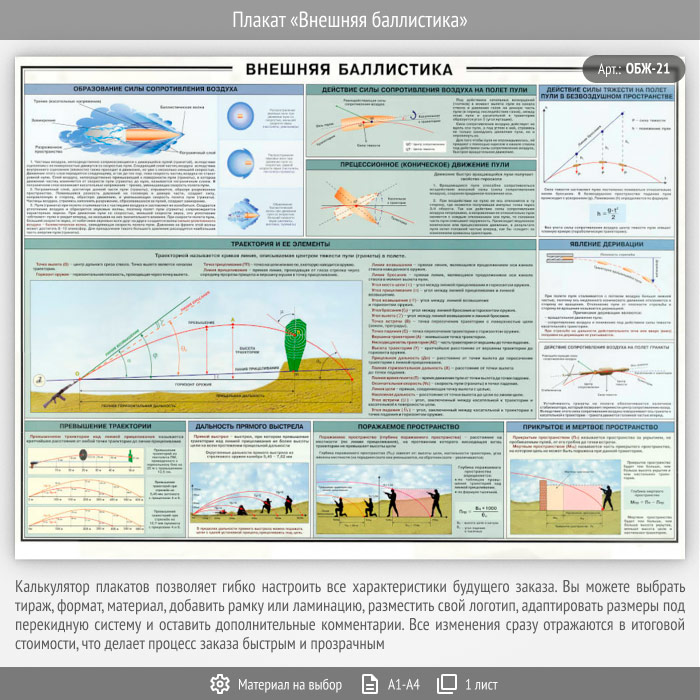 Плакат «Внешняя баллистика» (ОБЖ-21, 1 лист) в Москве купить