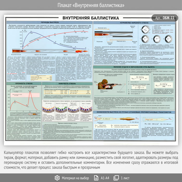 Плакат «Внутренняя баллистика» (ОБЖ-22, 1 лист) в Москве купить