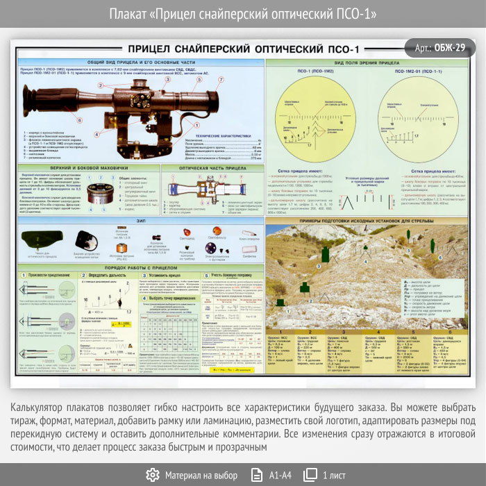 Плакат «Прицел снайперский оптический ПСО-1» (ОБЖ-29, 1 лист) в Москве купить