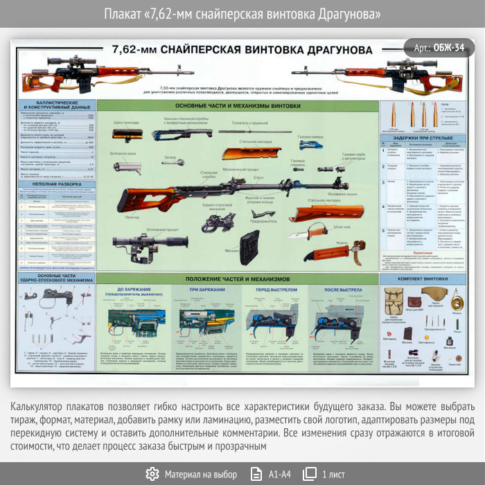 Плакат «7,62-мм снайперская винтовка Драгунова» (ОБЖ-34, 1 лист) в Москве купить
