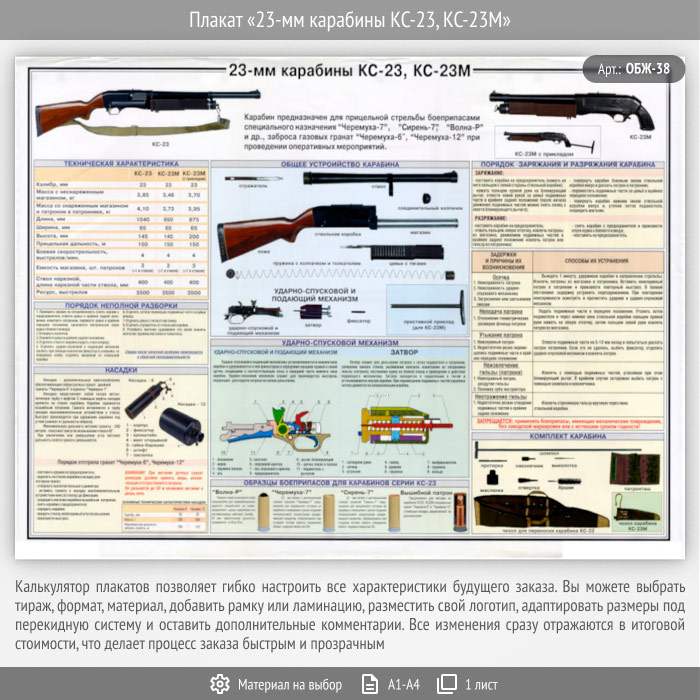 Плакат «23-мм карабины КС-23, КС-23М» (ОБЖ-38, 1 лист) в Москве купить