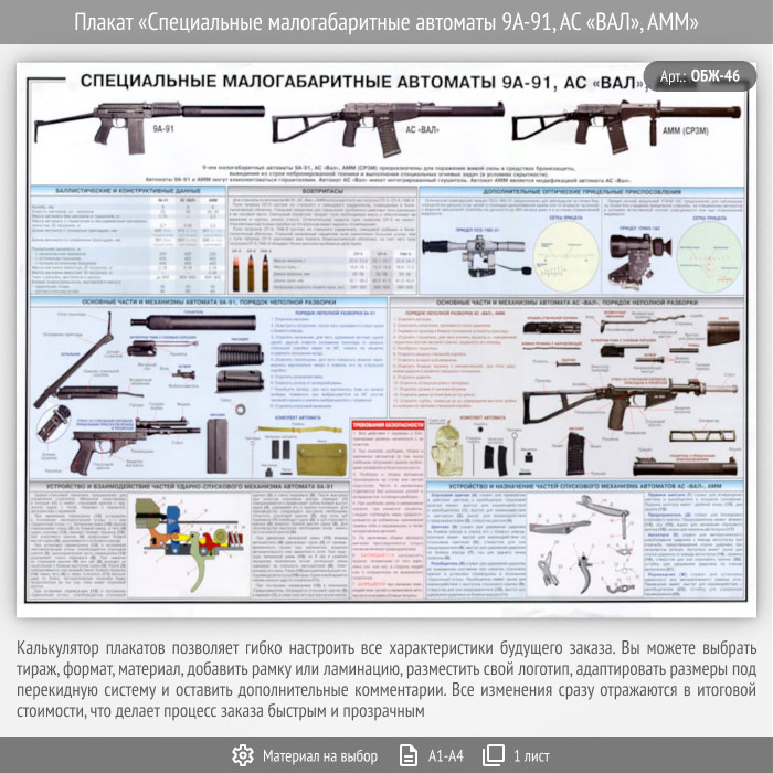 Плакат «Специальные малогабаритные автоматы 9А-91, АС «ВАЛ», АММ» (ОБЖ-46, 1 лист) в Москве купить