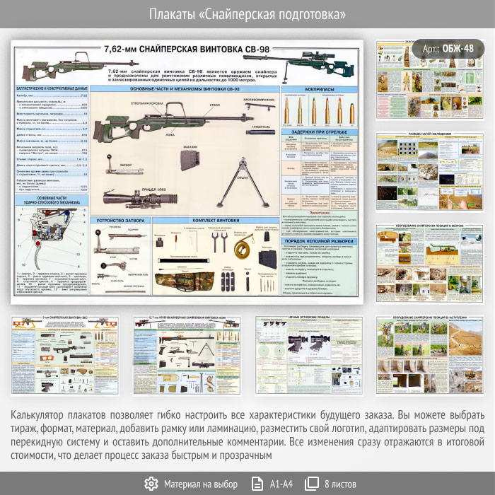 Плакаты «Снайперская подготовка» (ОБЖ-48, 8 листа) в Москве купить