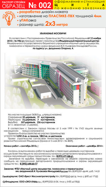 Паспорт стройки, образец № 2 (пластик 4 мм, 2000х3000 cм) в Москве купить