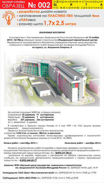 Паспорт стройки, образец № 2 (пластик 4 мм, 1700х2500 см) в Москве купить