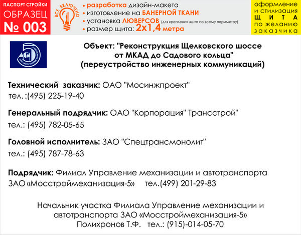Паспорт стройки, образец № 3 (баннерная ткань, 2000х1400 cм) в Москве купить