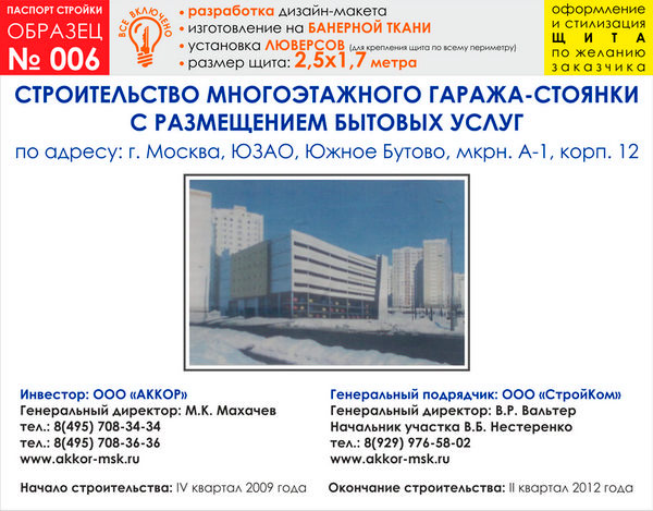 Паспорт стройки, образец № 6 (баннерная ткань, 2500х1700 cм) в Москве купить