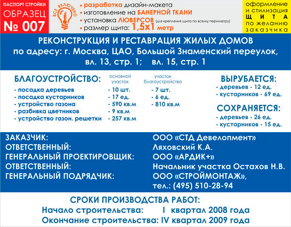 Паспорт стройки, образец № 7 (баннерная ткань, 1500х1000 cм) в Москве купить
