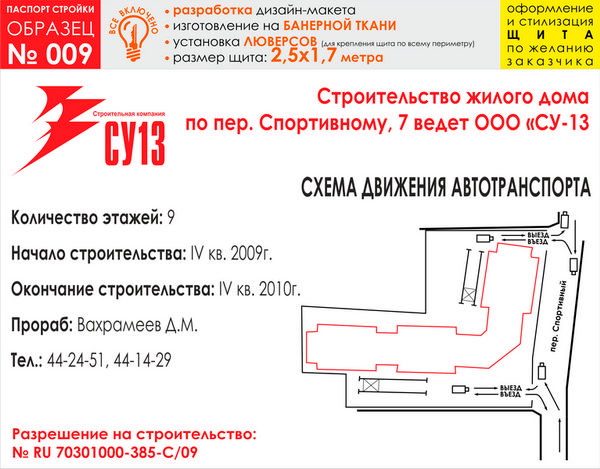 Паспорт стройки, образец № 9 (баннерная ткань, 2500х1700 cм) в Москве купить