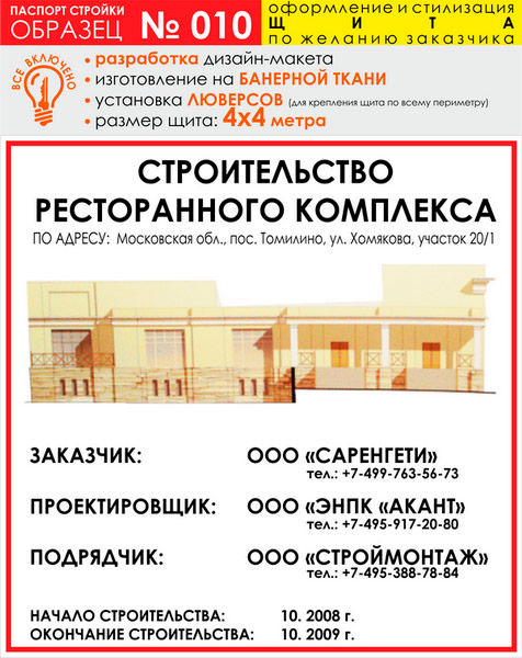 Паспорт стройки, образец № 10 (баннерная ткань, 4000х4000 cм) в Москве купить