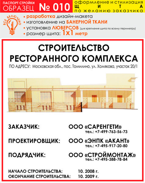 Паспорт стройки, образец № 10 (баннерная ткань, 1000х1000 cм) в Москве купить