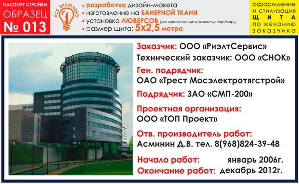 Паспорт стройки, образец № 13 (баннерная ткань, 5000х2500 cм) в Москве купить