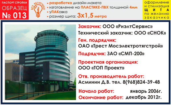 Паспорт стройки, образец № 13 (баннерная ткань, 6000х3000 cм)