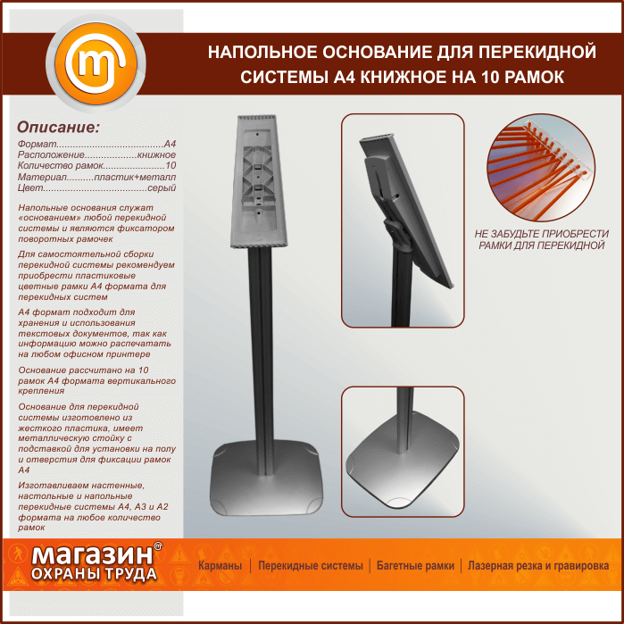 Напольное основание для перекидной системы А4 книжное на 10 рамок в Москве купить
