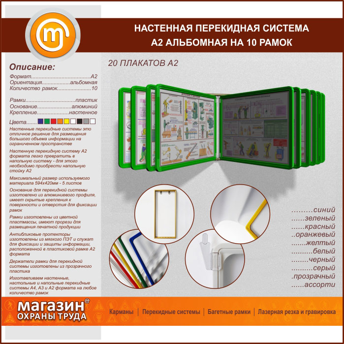 Настенная перекидная система А2 на 10 рамок альбомная в Москве купить