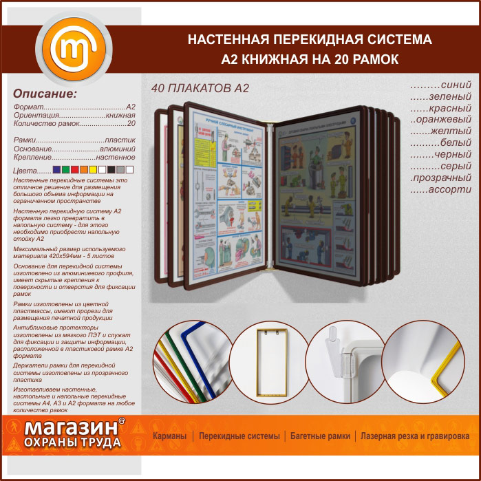 Настенная перекидная система А2 на 20 рамок книжная в Москве купить