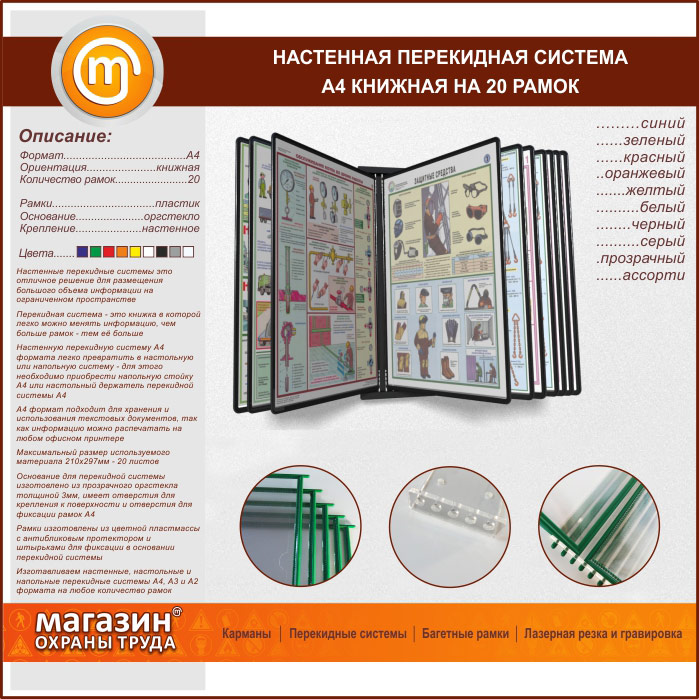 Настенная перекидная система А4 на 20 рамок книжная в Москве купить
