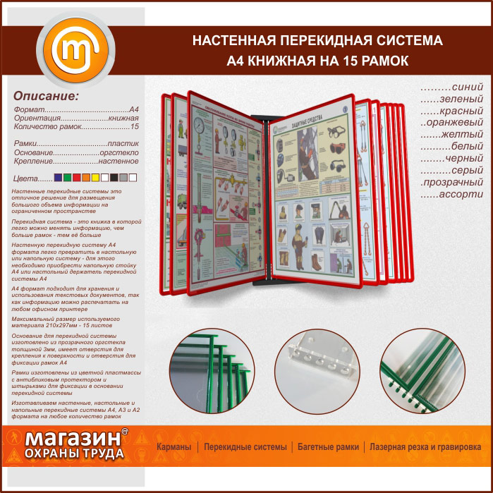 Настенная перекидная система А4 на 15 рамок книжная в Москве купить