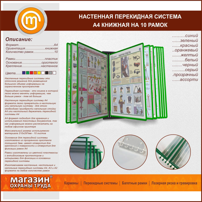 Настенная перекидная система А4 на 10 рамок книжная в Москве купить